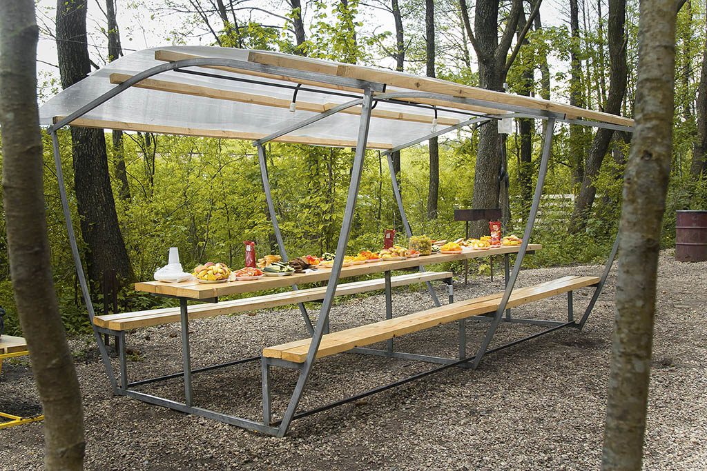 - Нет стенок, которые защищают от ветра и косого дождя.